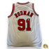 Jersey blanco de Chicago Bulls autografiado por el estadounidense Dennis Rodman